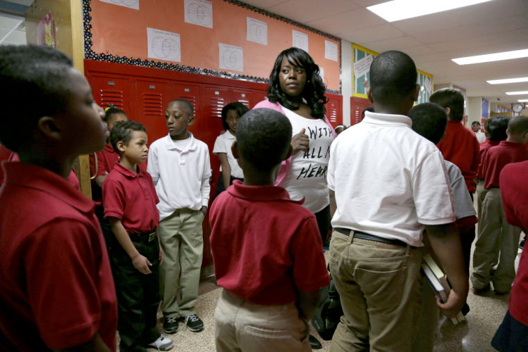 “Some people just can’t deal with the kids,” said Karesha Solomon, the lead third-grade teacher who attended Hawthorne as a child. She is one of only seven teachers who have worked there since Bitson arrived four years ago. “We’ve been short a third-grade teacher since January of last year. The people who take the biggest hit are the students who are on grade level.”