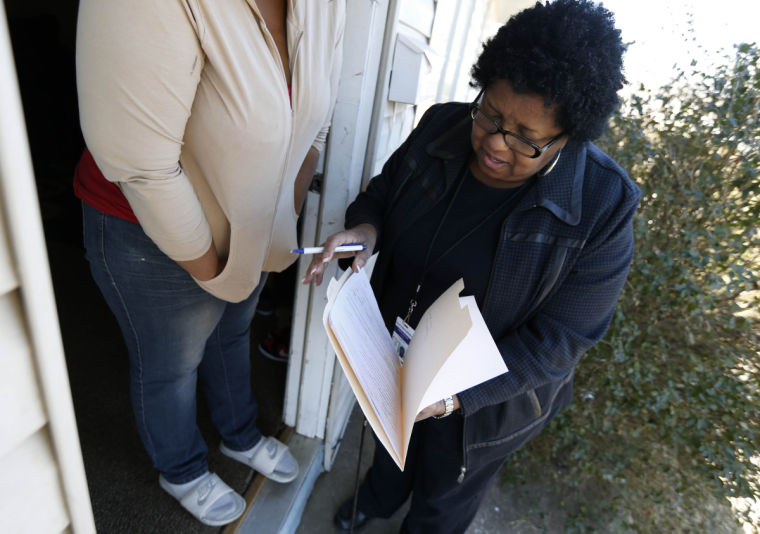 Janice Watkins, a counselor at Tulsa's Hawthorne Elementary School, brings testing paperwork to a school parents' home to be signed. MATT BARNARD/Tulsa World